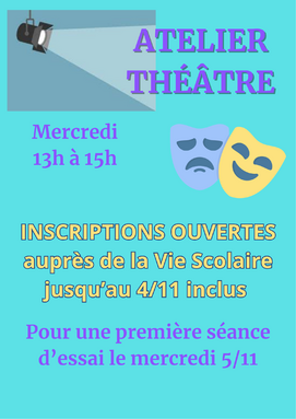 L'atelier théâtre débute ce mercredi!